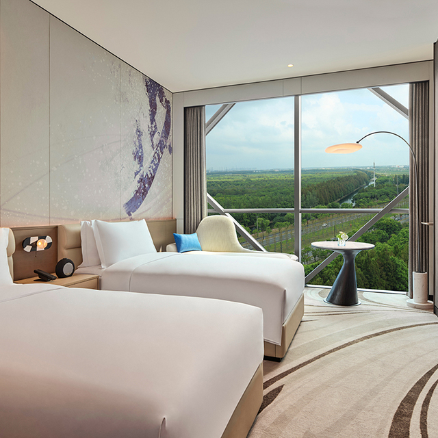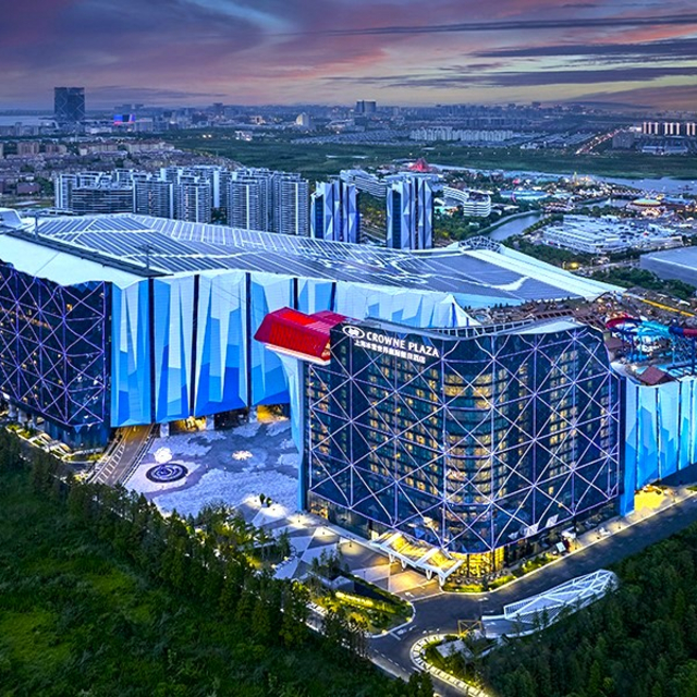 2天1晚的度假安排,亲子家庭还是入住:洲际旗下,上海冰雪世界皇冠假日酒店。酒店出发,步行穿过星耀广场,即达耀雪冰雪世界及耀雪水世界,省心省力,轻松遛娃。