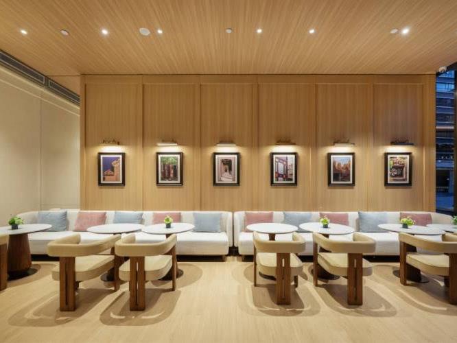 步入挑高10米的大堂,宛如生机勃勃的岭南花园,绿植与盆栽肆意生长,“空中花园”般的通透感让人瞬间忘却旅途疲惫。墙壁上,广州特色建筑的装饰画,将城市的历史与现代完美串联。