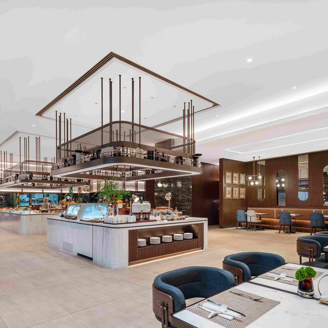 酒店的玉兰轩西餐厅,时尚简洁的设计, 提供融汇西方以及泛亚地区经典美食的自助餐以及零点佳肴。开放式的厨房根据食客不同口味现场烹饪, 可以同时容纳252人就餐。