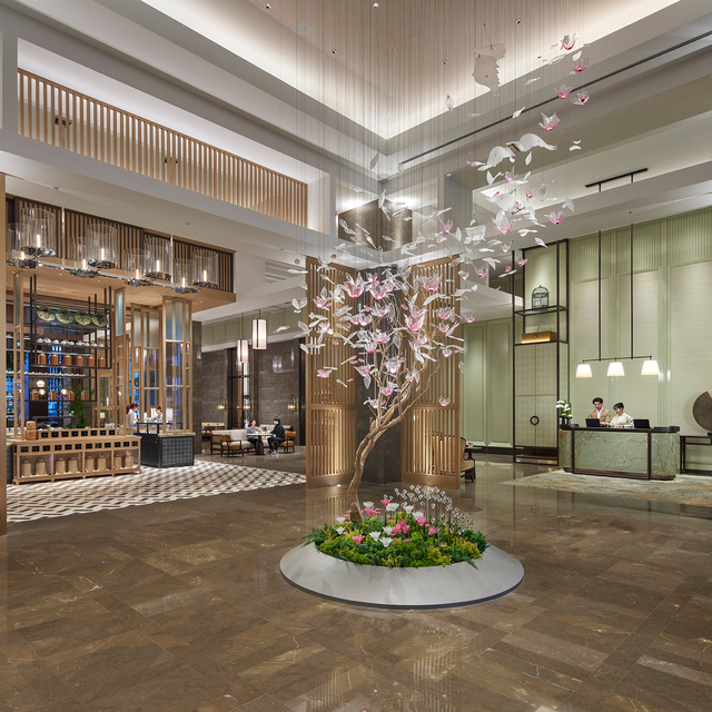 无处不自然的艺术灯饰和装置,充满生命力!不只是真材实料的花艺绿植充盈着酒店,就连灯饰、艺术画作、地毯和墙上也都被各种自然元素点缀着,而且部分运用科技展示,动静结合,带来自然的呼吸力。
