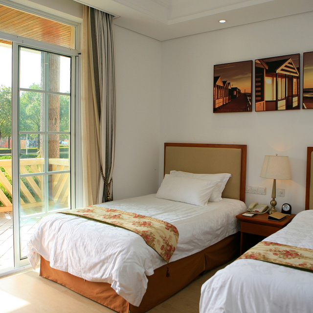酒店共有客房100余间,分布于法式、美式、日式、俄式、意式五幢别墅内,出门即葱郁绿植,满溢新氧。