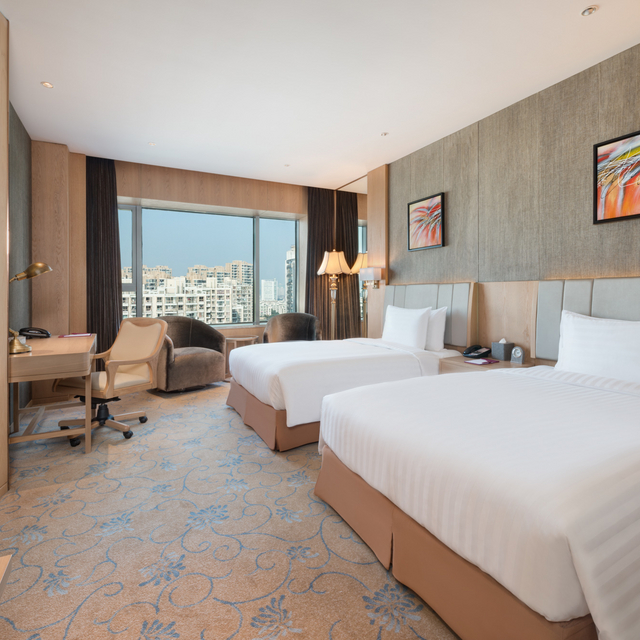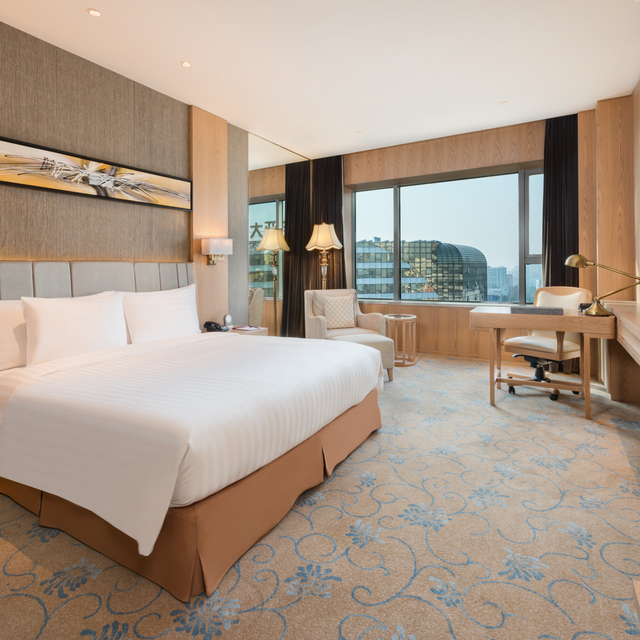 酒店共有313间客房。房间格调高雅不失现代感,没有过分复杂的设计,通铺式花纹地毯让人倍感温馨,偌大的落地窗使房间自然光线极好。