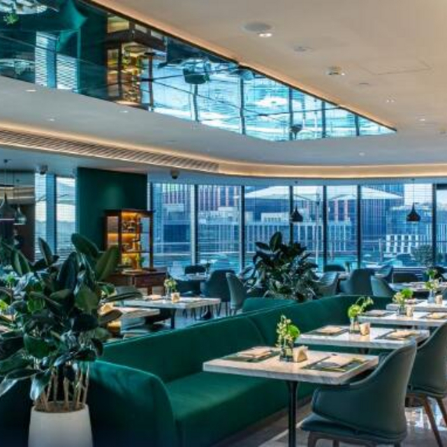 餐厅满眼墨绿色的装饰,质感且高级。丰盛多样的中西式自助早餐,从这里幵启活力满满的一天。餐厅同时还供应午、晚餐。且设有大露台用餐区域,在这享用下午茶很是出片,一边眺望城市的美景,一边品味舌尖上的美味。用餐时间:下午茶14:00--16:00;晚餐17:30--20:30。