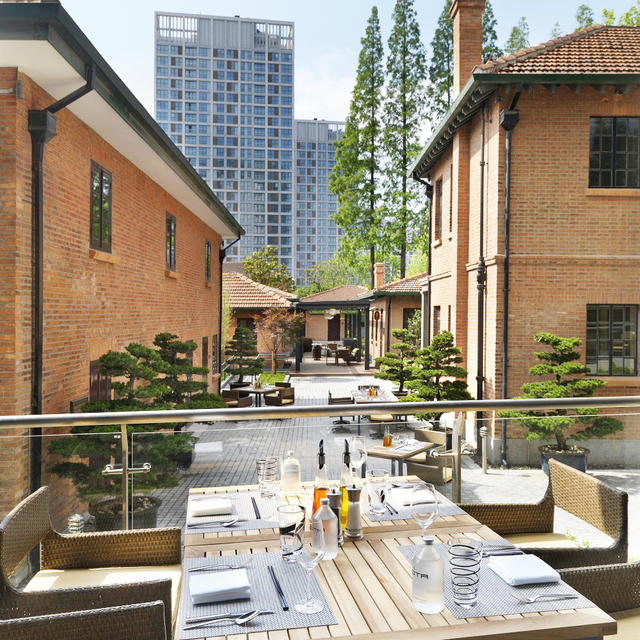 而花园旁,则是9栋独立的上世纪30年代的历史别墅建筑。别墅群中藏着一个颇具英伦风格的酒吧“酒坊”,拥有户外露台,可以品尝到各式特色的饮品,空闲时间可以来这里小酌两杯,放松一下。