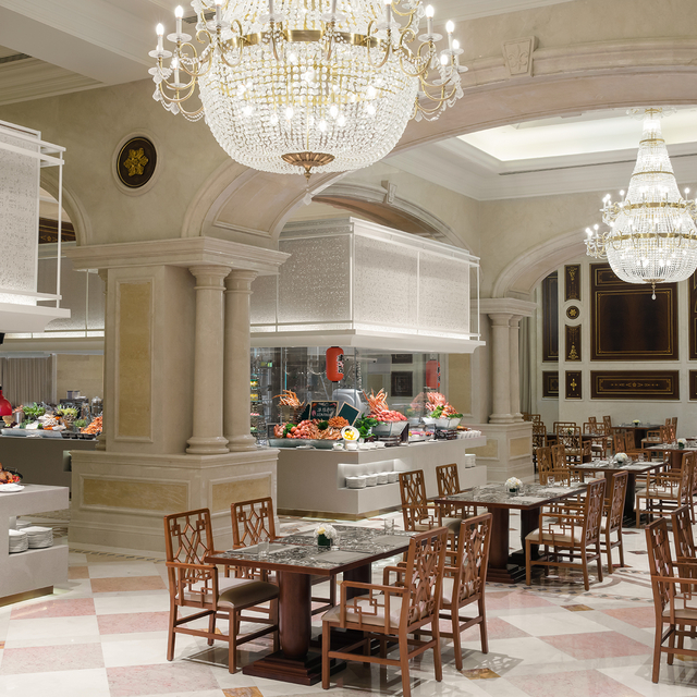 莲·全日制餐厅,早晚餐都可在此享用。其中,自助晚餐选择多样,有海鲜、刺身、寿司以及烤肉、甜品、中西热菜等,不同季节主题不同,惊喜满满。