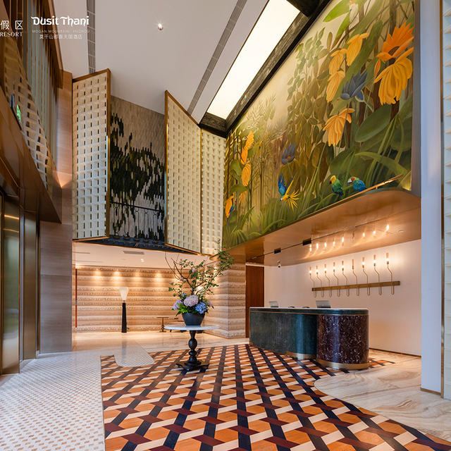 都喜来到莫干山,更是以的方式融入并展现莫干山的特色,建筑和设计上都充满了泰式风情。步入大堂与前厅,身着泰式服饰的工作人员,会道一声"sawatdeeka",行泰式欢迎礼仪,并为你戴上花环,准备好欢迎茶水;入住期间,你能感受到了管家、教练、服务人员…专业热情的泰式服务。