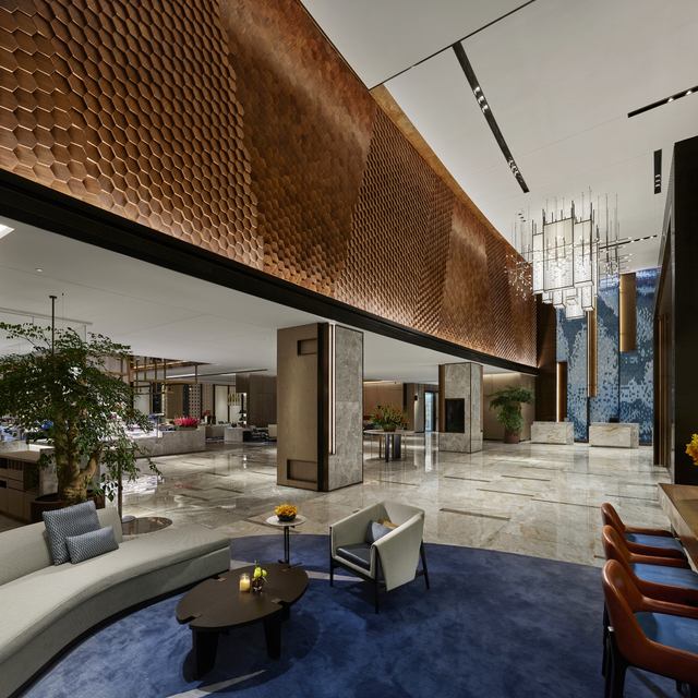 松江凯悦酒店的室内空间由YANG设计担纲,以织造为引,水域为线,编织出了一场空间、肌理、光线、山湖等交融的流动盛宴。