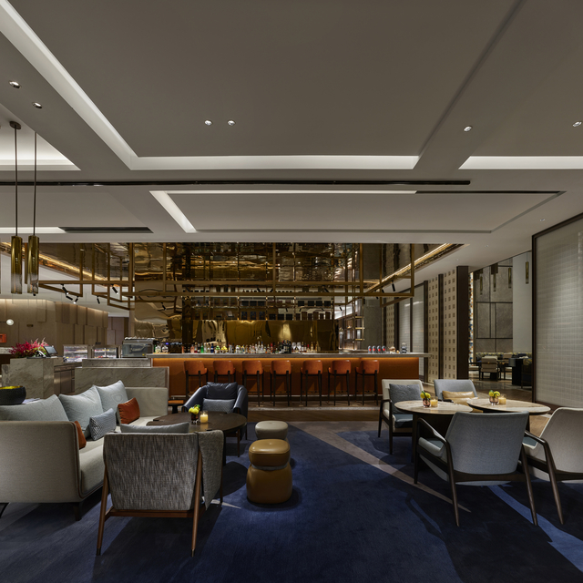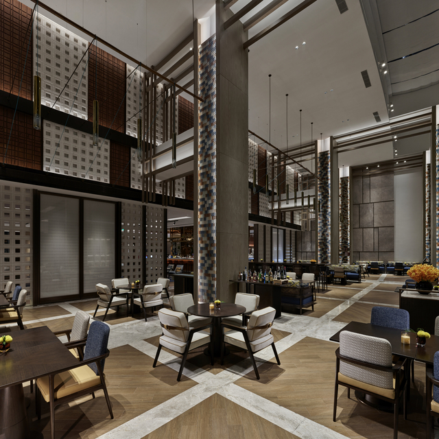 进入酒店大堂,休憩区、酒廊、咖啡厅与户外湖畔花园打造的四重空间,都以开放式的设计相辅相成;中间加持着隔断,来增加私密度,完全能够满足当代人的社交所需。