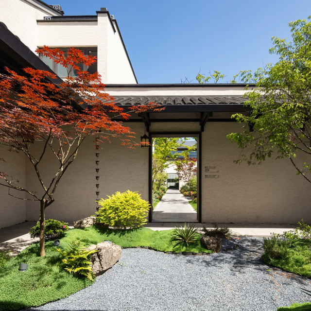 穿行其中,酒店大小园林一重连着一重,串起了四季风华。花木满园,每个回廊、雨链、天井,甚至是转角…都能让你有种一步一景、身处收费景点的既视感。