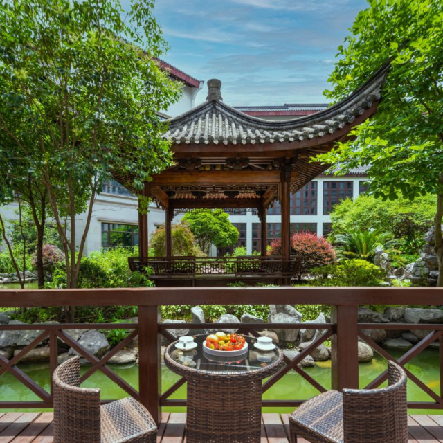 宾馆现共拥有各类雅致舒适客房共416间,各具风情的中式建筑依次穿插于河畔绿荫之间,化空间之美于匠心独具之中。