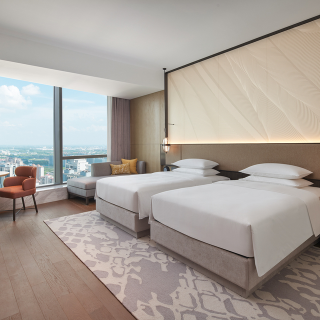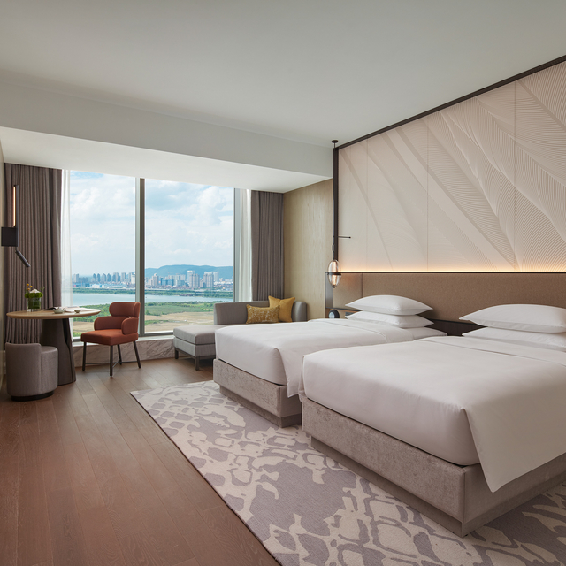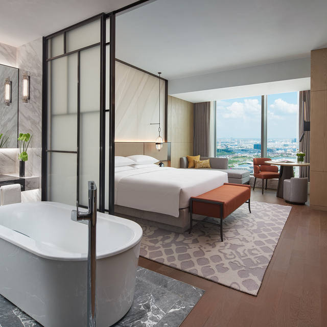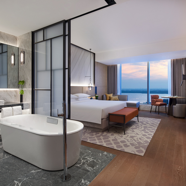 40㎡凯悦湖景房,明亮舒适,窗边的沙发可坐可卧,不出房间即可收获昆承湖至美日落。房内有蓝牙音响和卫星电视等便利设施;浴室干湿分离,部分房型还配有浴缸。