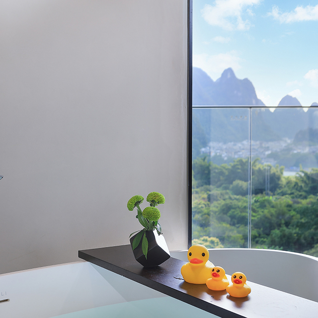 如: 58㎡山景阳台大床房,2米特大床,饱览桂林山水甲天下景观+270°夕阳晚霞; 60㎡独享庭院房,大床2米/双床1.3米,带浴缸; 180㎡漓江全景私汤套房,一室一厅,一张2米特大床,超大露台观至美江景...