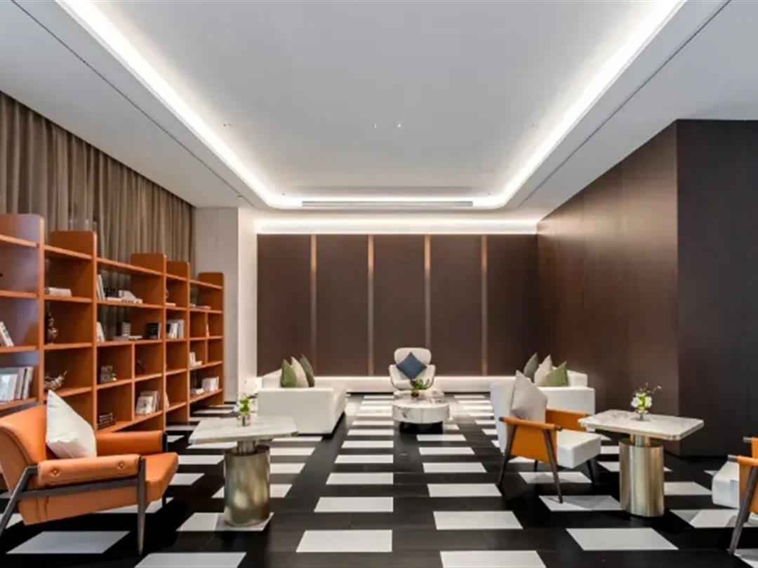 公区休闲廊采用暖色调搭配简约家具,与室外景观无缝衔接,打造「都市逸享」氛围