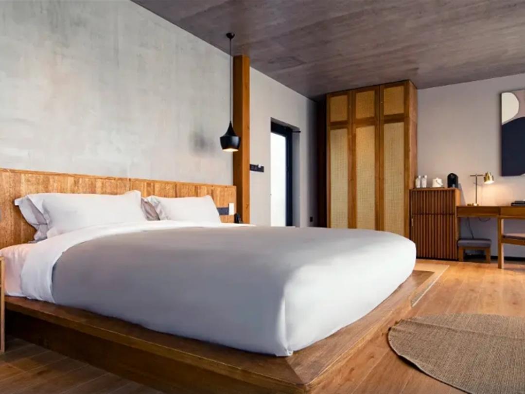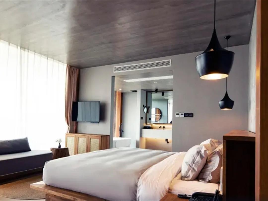 空调、蓝牙音箱、浴缸、智能马桶、空气净化器、除湿器、迷你吧等,面积均为43㎡,标配一室一卫一露台,大床多为2米*2米,很贴心。