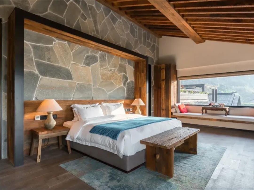 所有客房均配有景观,一楼客房都配有能推门而出的小庭院,楼上客房则设计了能看山、观泳池风光的阳台,景致无虑!夏天有空调,冬天更有地暖加持,很窝心。