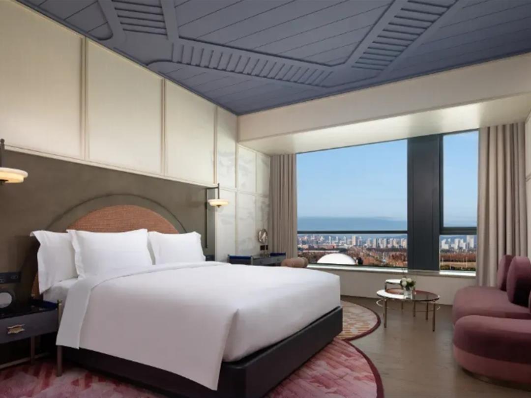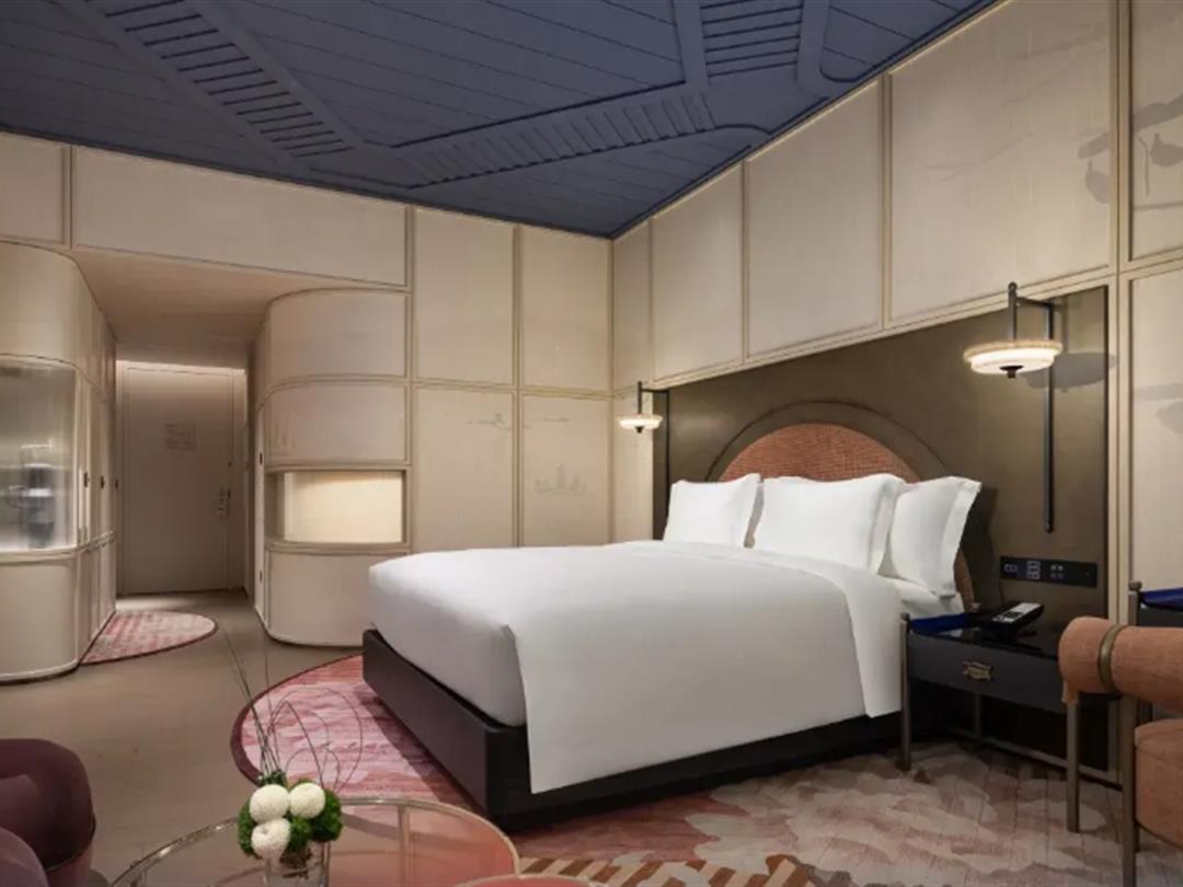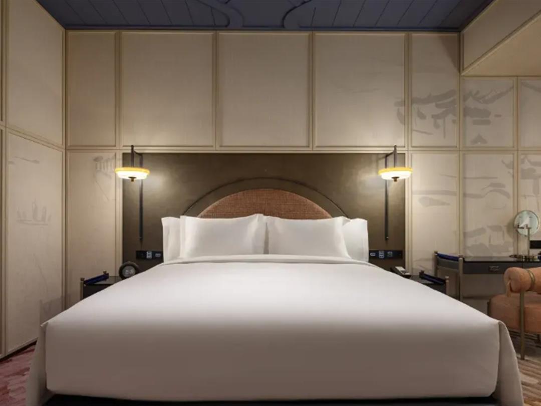 作为世界知名的赏樱胜地,客房地毯是无锡市花“杜鹃花”,床头是江南特色的拱桥,墙面上的湖和船,目光所及皆为锡城邻里文化元素。