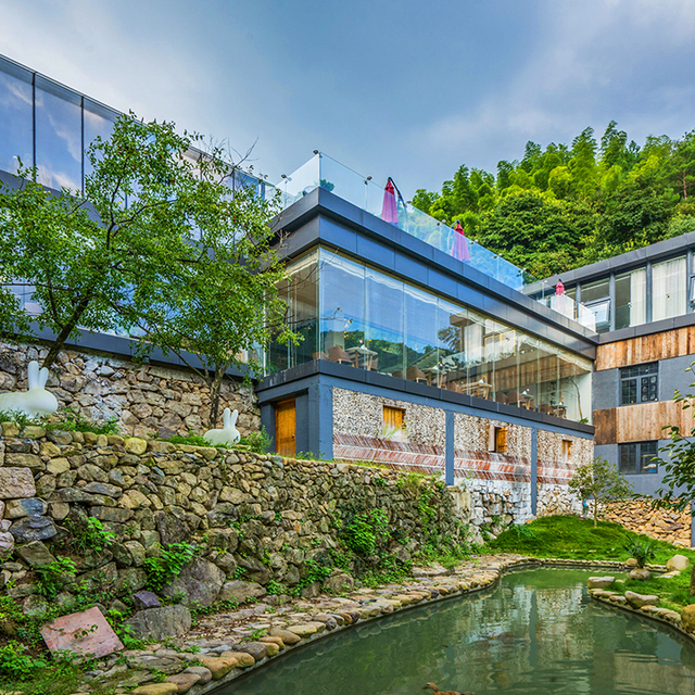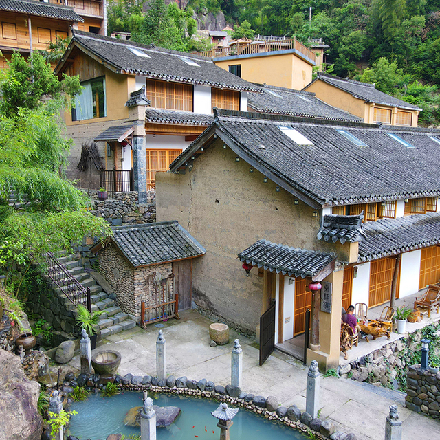是由当地回乡创业的四兄弟携手,在500亩山水间改造了30多户江南民居,历时五年、耗资近亿打造的山间别墅式民宿。