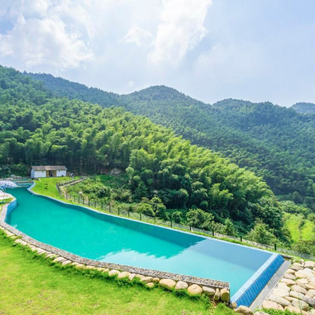 很难找打一家民宿的配套如尚诗堂·天姥山居般丰富多彩:秋冬春季可以在山林间泡石上汤泉,夏季畅游山间无边戏水池,还配有棋牌室、茶吧等,更能随时徒步探山林竹海野趣。酒店打造了一处园林坐观式生态温泉汤池区域,一个个汤池坐落在山间,被泉石亭榭、花树果草环绕,一边听山风呼深氧,一边彻底放松身心。整个泳池三面环山,直面至美山景!长达近80米,畅游其中,被美景包围,美妙又惬意!