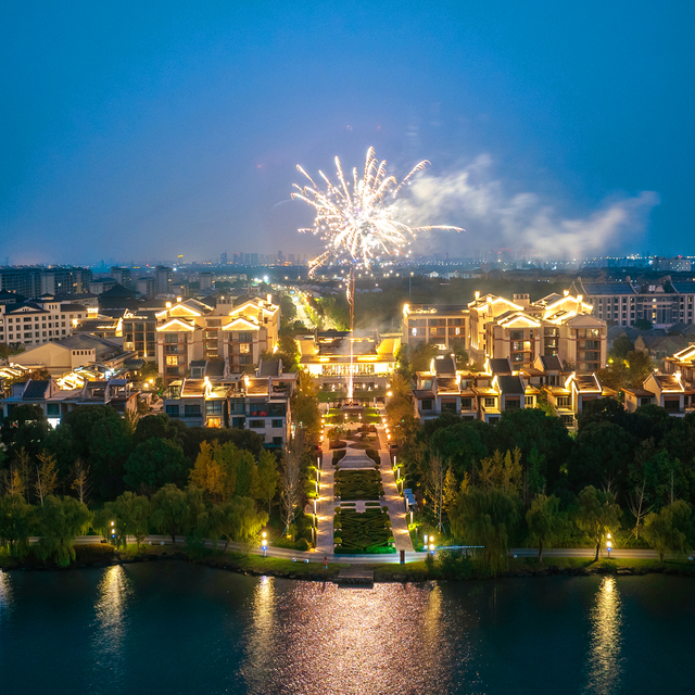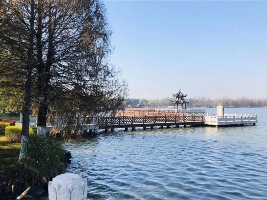 走在酒店的步道,随意就能呼吸新鲜空气,湖面泛着波光粼粼的星芒,湘家荡美景尽收眼底。