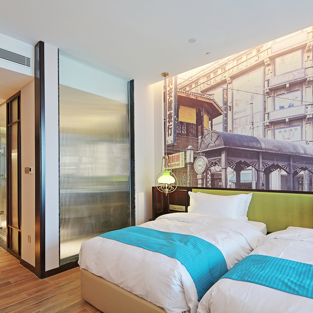 房间40㎡起跳,空间开阔,带着孩子来住也妥妥够用。酒店在室内设计也下足的功夫:大胆又不失格调的家具撞色、大幅复古背景墙、照明灯带也延续了颇有年代感的风格。