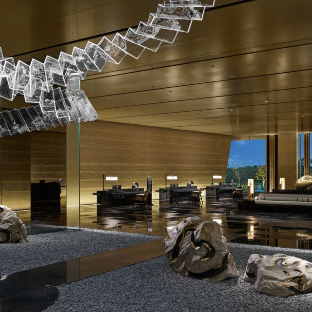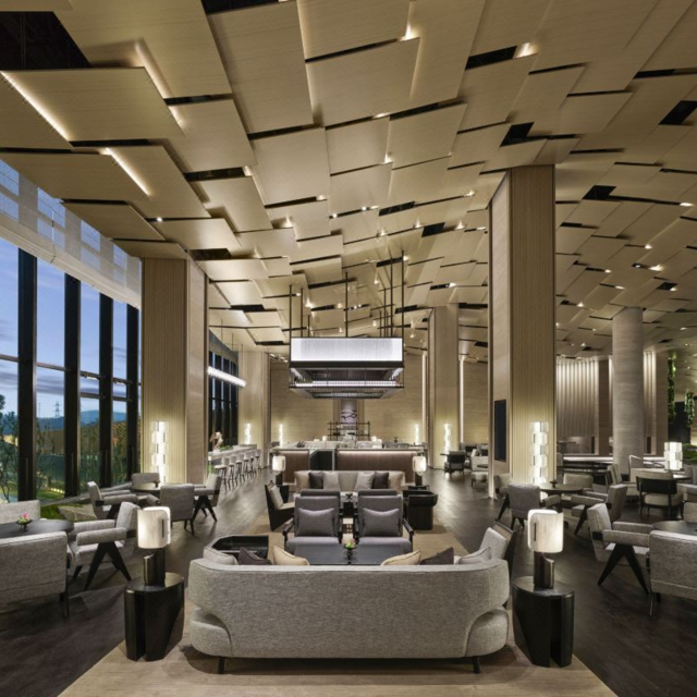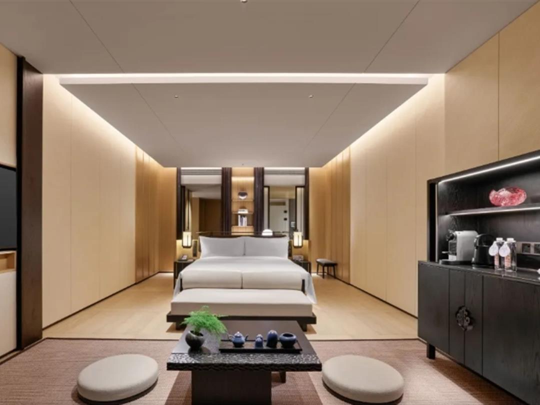 酒店整体设计依托于牛首山自然景观,在充分考虑与环境融合的基础上,追求“隐”和“野”的设计手法,强调典雅的东方美学和轻盈空灵的禅意感受和为酒店控提供更加纯粹自然的居停享受。