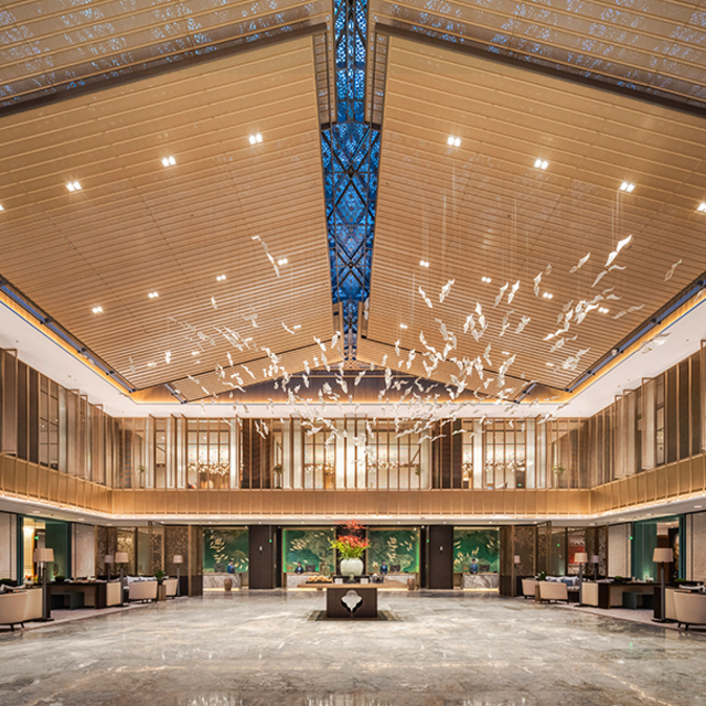 酒店外观建筑壮观豪华,内部设计也十分大气,更是融合绍兴本地元素的江南文化、新中式、宋代美学,将“豪华大气,诗意之美”展现的淋漓尽致。