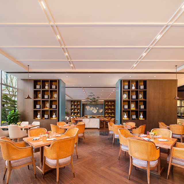 酒店拥有一间西餐厅——春晓咖啡厅、一间四季轩中餐厅,以及停云阁包厢群,每一间都颇具设计感,味觉视觉双重享受。