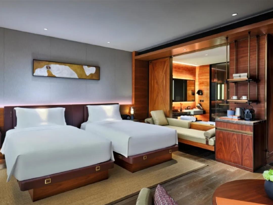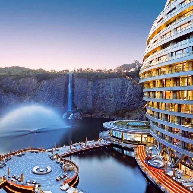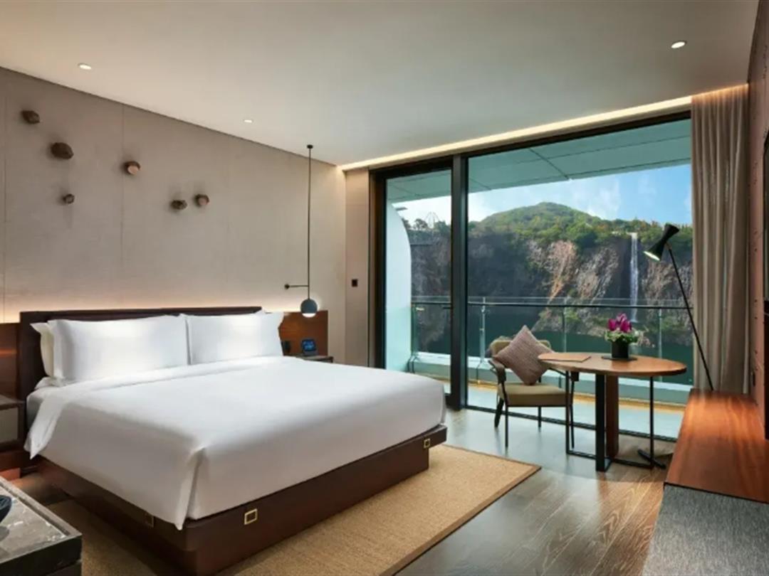 330间客房及套房,每间都设有露台,拥有不同角度的“深坑奇景”,或是瀑布景观,或是崖壁风光。