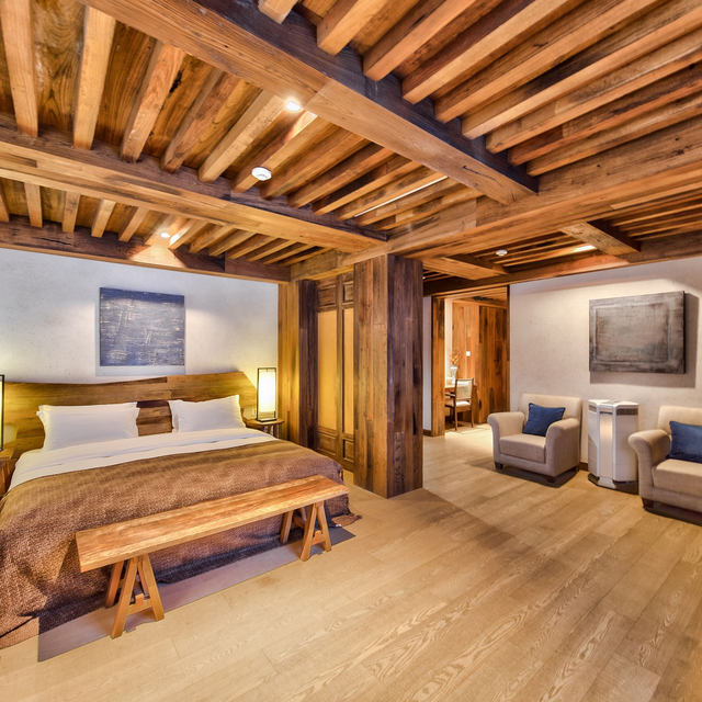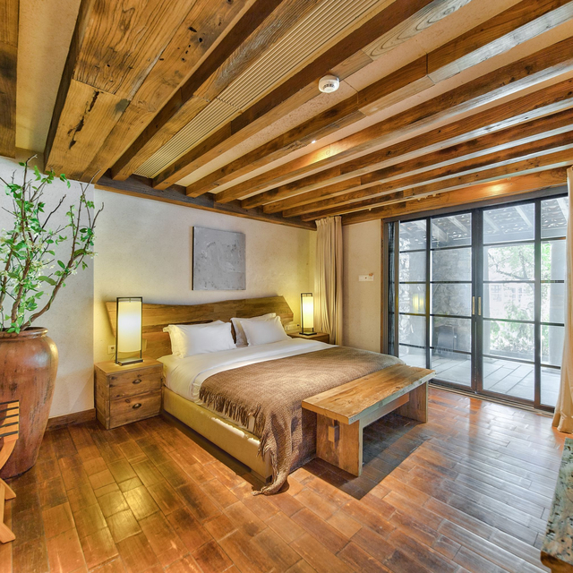客房面积30㎡至70㎡不等,以温暖的木材作为主要装修材料,搭配古朴雅致的装饰品,与古村落的古韵相辅相成,给人一种宁静的诗意气息。