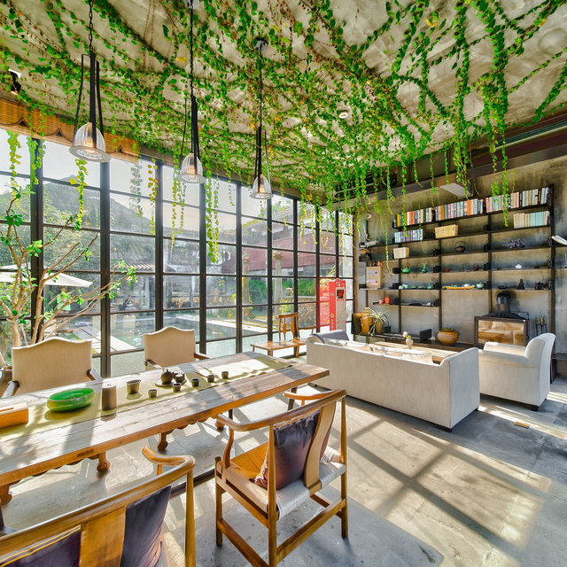 步入酒店,你会发现这里的主体建筑大都保留了原来民国时期的旧房原貌,中式、餐厅、咖啡吧、茶吧也利用白墙木梁营造出一个非常古朴富有美学设计的居停空间。