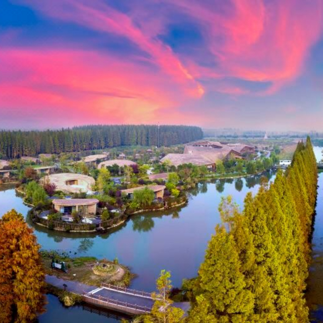 酒店地处江苏省金湖县水上森林景区内,周围有万亩水杉林环绕。