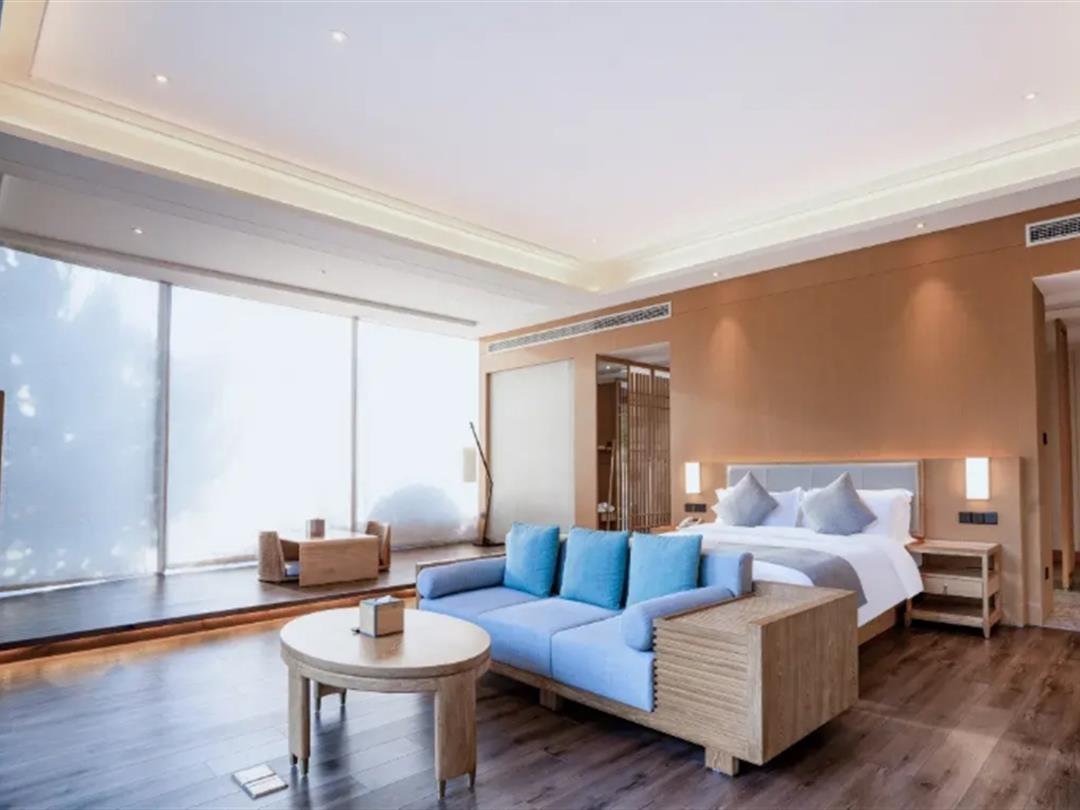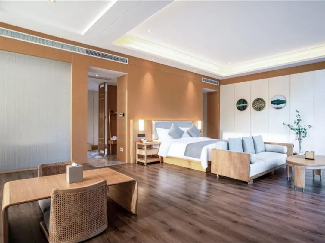 别墅区客房,温泉庭院钓台大床房,位于酒店别院1层,45-60㎡,大床2*1.8米↓
