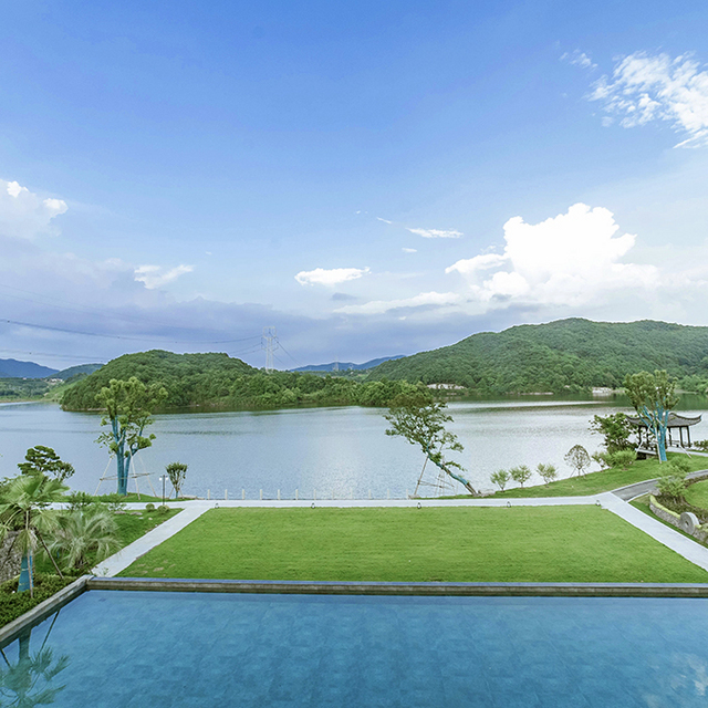 酒店位于占地600亩的东山湖风景区内,由浙江春晖集团打造,毗邻世界青瓷源头古窑址,与水相依山环绕,这里曾是东晋名仕谢安隐居东山再起之地,也是谢灵运《山居赋》所在地。酒店的名字,则是源自那句 “托寄山水得真趣,放怀天外极大观”!