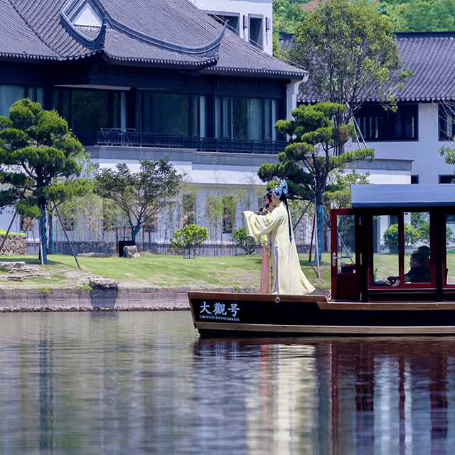 开业至今,东山大观颇具人气的两大体验,是画舫游湖和青瓷工坊。东山号和大观号两艘画舫,能带你环湖游行,近观山水,远看大观。