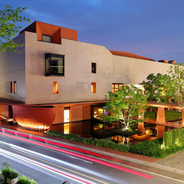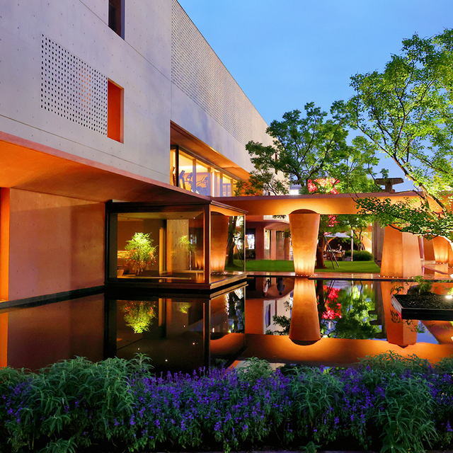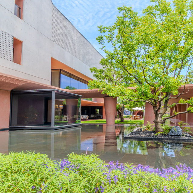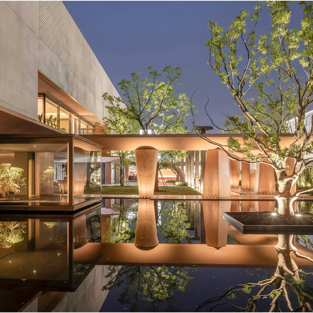 而建筑外立面则应用几何的弧形、折角、直线,将工业风的粗狂与江南庭院的温柔做了巧妙的糅合。
