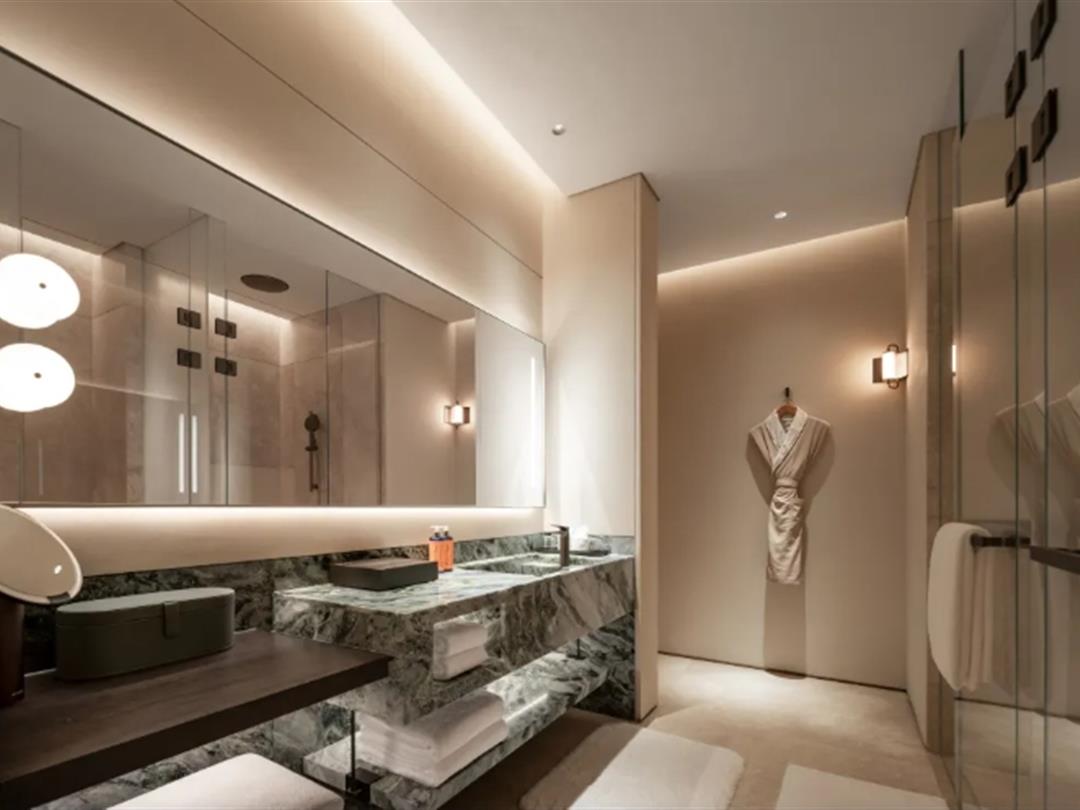客房设施上更是尽享轻奢本色。每间客房均配备了Dyson戴森吹风机、Atelier Cologne法国欧珑沐浴系列、Tivoli Audio流金岁月音响,以及智能马桶、可以无线投屏的电视等等。