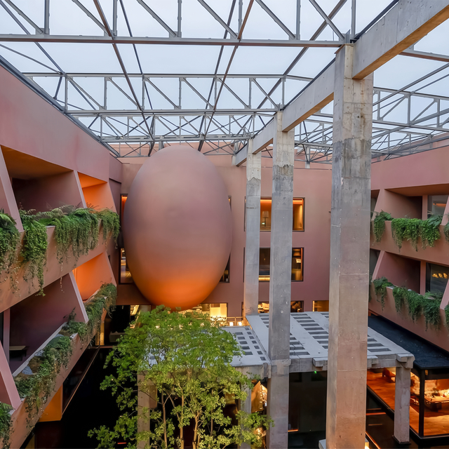 而庭院中看到的“蛋”形的建筑里则藏着必打卡的旋转楼梯,双螺旋结构,让整个空间宛如一座宇宙飞船。