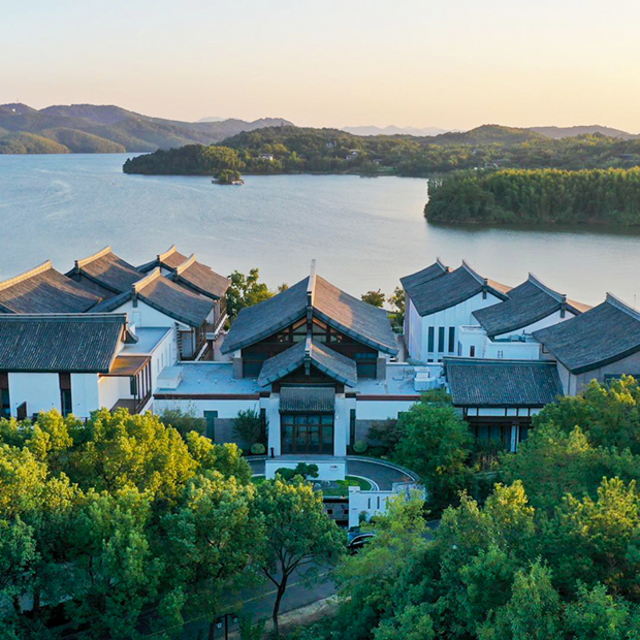 它占据着一座天目湖半岛,被300平方公里的自然保护区和7平方公里的水源环绕,一条秘境之森的道路通向酒店,隔绝喧闹,再从庄园式的大门内进入,让度假的私密和仪式感拉满!