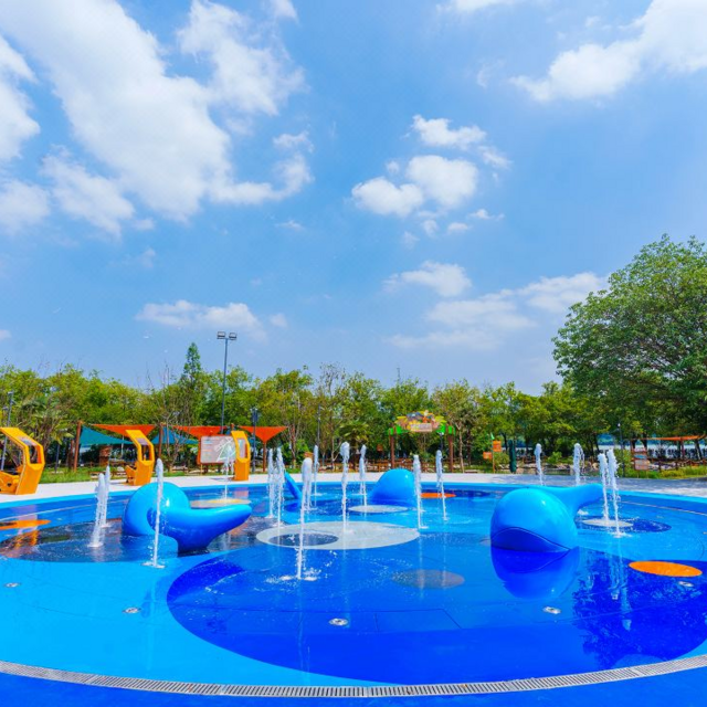 夏天来,森啵广场会开启喷水设置,让孩子们可以玩水,清凉一下。