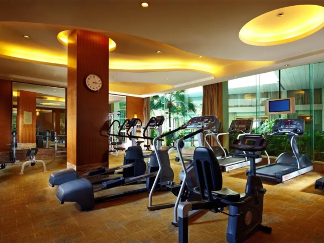 爱运动的年轻人来,酒店的迎宾楼1F设有康体中心,配备了健身房和300㎡室内热带雨林泳池,住店客人可以免费玩。
