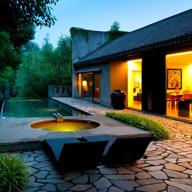 别墅分单卧、双卧,面积在300至700平米不等,院内有私人游泳池和露天温泉池。