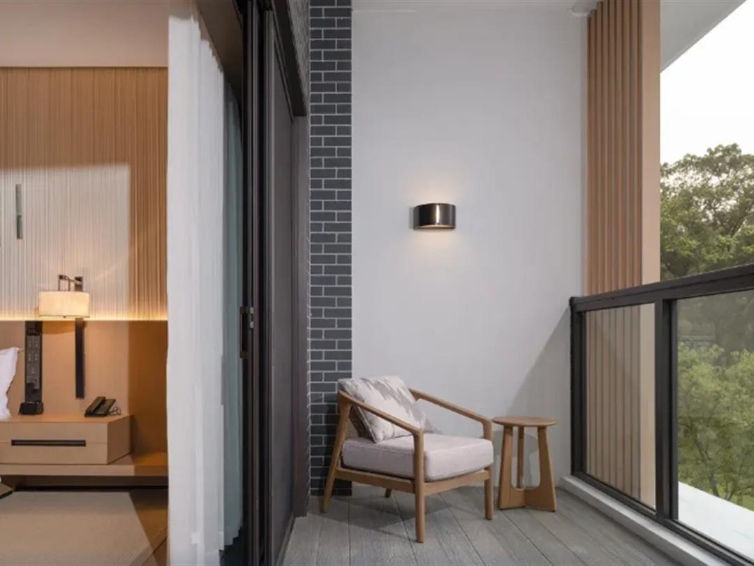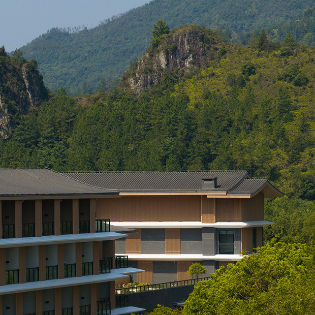 仙居悦柳共有195间套客房,由设计精巧的连廊衔接,间间都有落地窗,透过阳台或庭院,便能尽享仙居四季之美。从房型名字,可以判别出所观景色,如:依山景观、隐溪景观、豪华庭院…