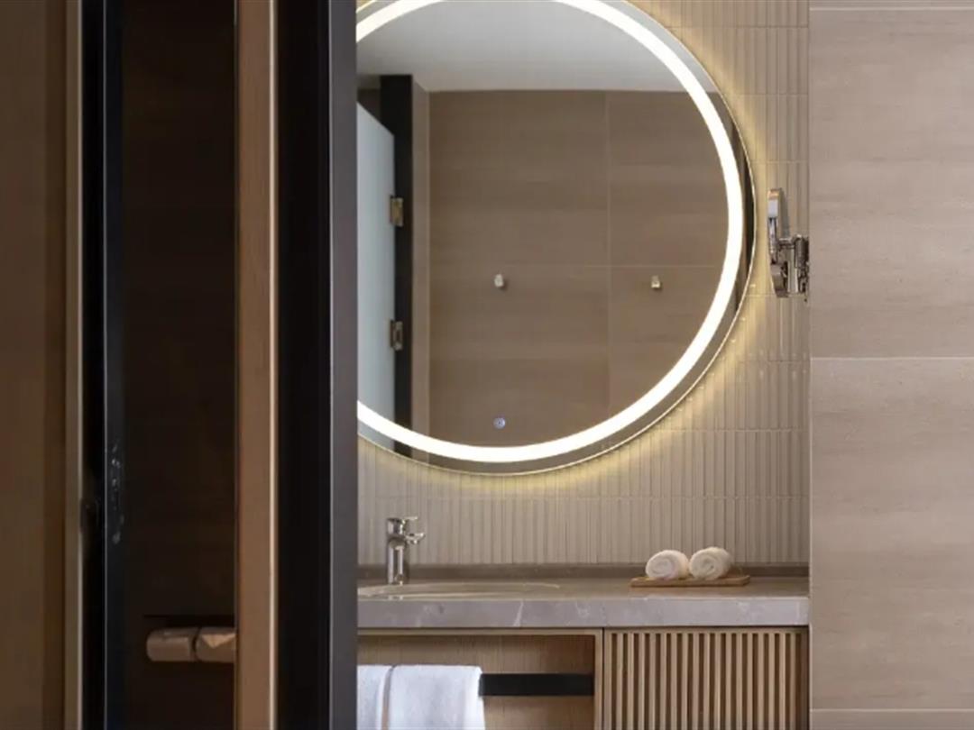 其中,基础房为依山景观房,40㎡起,以中式古典美学为基础设计,延续使用公区的木色条纹元素,与圆弧/圆角的灯饰、桌子、墙上的画作、镜子…相映衬,细节装饰上都在营造桃源避世感,整个空间简约不失雅致。▲依山景观房
