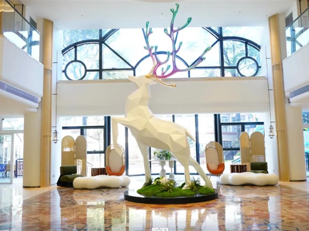 步入大堂,奔腾起步的七彩麋鹿,仿佛从童话故事书里穿越而来,温暖典雅的色调搭配,抬头还有“星光”点点。