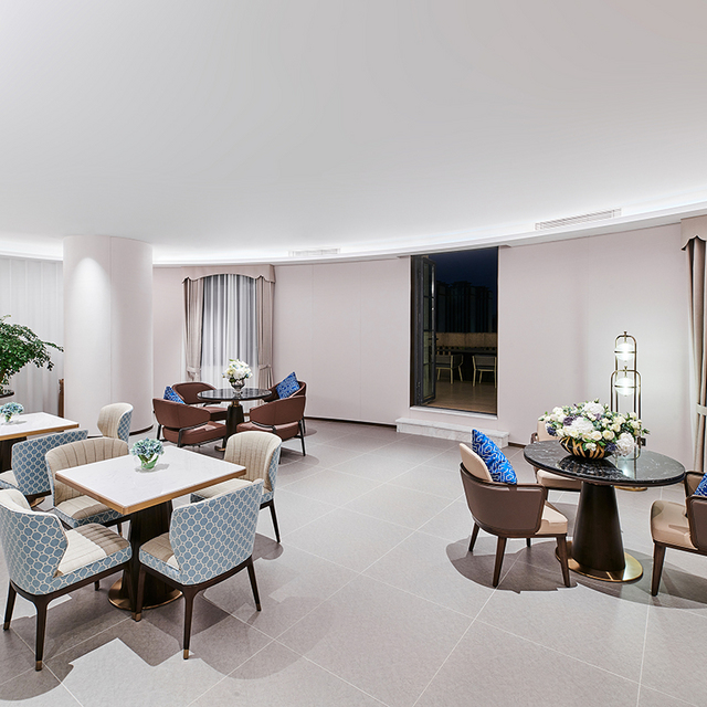 自助早餐就在此享用,中西式美食都有,精致用心,尤其是小馄饨与浇头面。周六和部分法定节假日,餐厅还会推出自助晚餐,主题随季节更新。