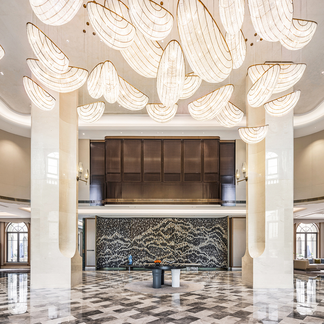 大堂上方的水晶灯饰、两侧的复古之窗、前台背景墙的画作、户外中庭的玫瑰瀑布…每一处都让人忍不住按下快门。