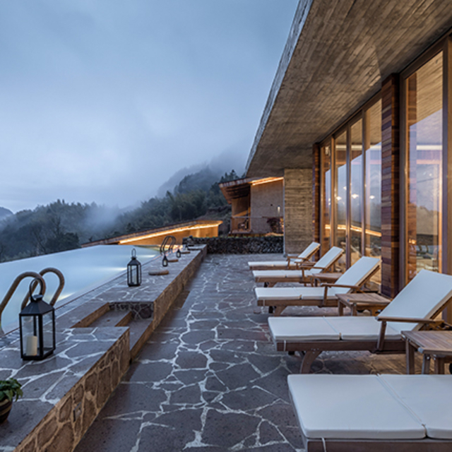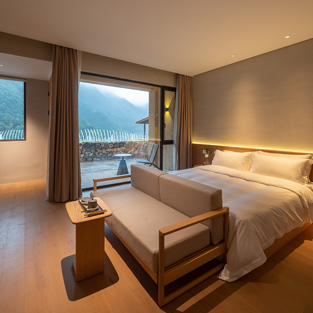 为了让每位到访之人,可以毫不费力得坐拥山色云海美景,酒店不仅在户外,设计了多个功能区域,实现边休闲边赏景的度假愿望,更在室内(大堂、餐厅、书屋、客房等)空间将玻璃设计运用得恰到好处,实现站、坐、甚至是躺着,就能拥有变换美景的视野!