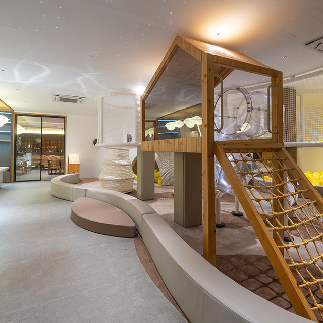 其次,便是它为每位孩子及拥有童玩心的大人,创作了一座颇具设计感的云朵儿童乐园,这里不仅有仿佛悬在空中、宛若云朵造型的“床”,更有一座云朵造型的户外泳池,还有摆放着滑滑梯、攀爬等玩乐项目的室内活动区…亲子家庭客人来,完全不用担心去哪儿遛娃啦!