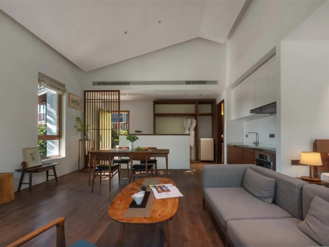 甚至还为追求私密及结伴游客人,打造了揽云独栋别墅(100㎡,1张1.8米大床+1张1.2米单人床)和揽云双卧别墅(160-180㎡,2张大床房),客厅、房间、洗漱空间各有分区,家的氛围更浓郁。