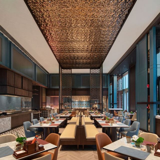其中,自助早餐和周末开放的自助晚餐,都在鲜艳全日自助餐厅内享用。开放式烹饪台和丰富多样的取餐区,能满足不同味蕾所需。
